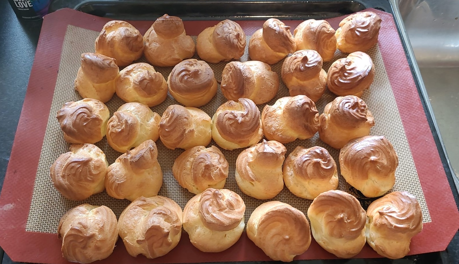 6. Zet de soezen direct in de oven en bak ze in circa 20 minuten gaar en goudbruin. Koel ze daarna buiten de oven af. Het resultaat moet er ongeveer zo uitzien:
