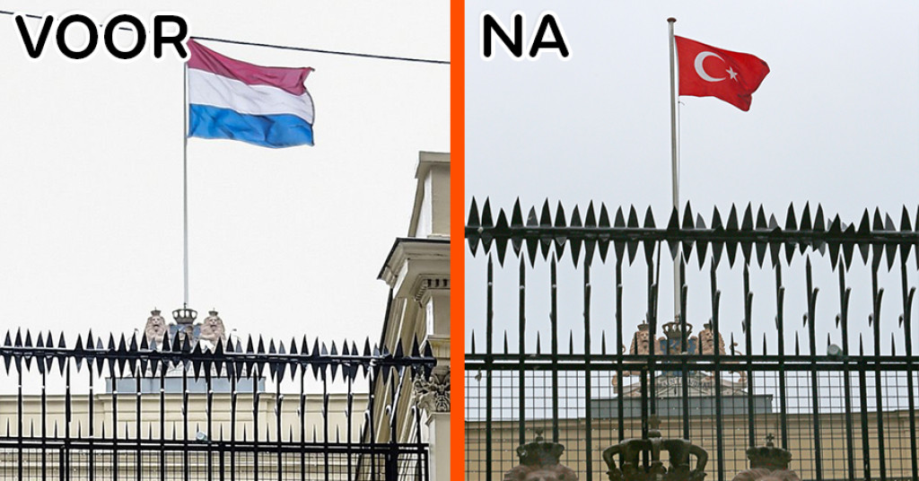 Bij het Nederlandse consulaat in Istanbul is de Nederlandse vlag vervangen door de Turkse. Op beelden is te zien hoe een betoger vanaf het dak 'Allahoe akbar' schreeuwt terwijl hij voor de Turkse vlag staat.