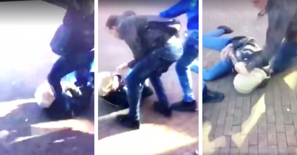 Het filmpje werd oorspronkelijk gepost door de Facebookpagina Trots op Islam, die meer dan 100.000 volgers heeft. (Het slachtoffer van de mishandeling draagt een hoofddoek.) De beheerder van de pagina vraagt iedereen het filmpje te delen om de daders te kunnen pakken: een oproep waaraan zo een 6.000 mensen gehoor gaven.