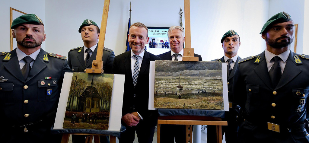 Het gaat om de stukken Zeezicht bij Scheveningen en Het uitgaan van de Hervormde Kerk te Nuenen. Die schilderijen waren veertien jaar lang spoorloos, maar werden in september vorig jaar door de Italiaanse politie teruggevonden. De doeken bleken inmiddels in handen van de Italiaanse maffia en waren lange tijd opgeslagen in een dubbele wand in het huis van de ouders van maffiabaas Raffaele Imperiale.