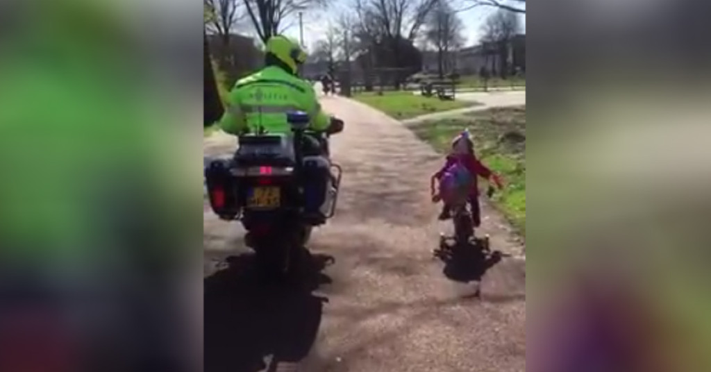 Schattig: motoragent doet wedstrijdje met 3-jarige