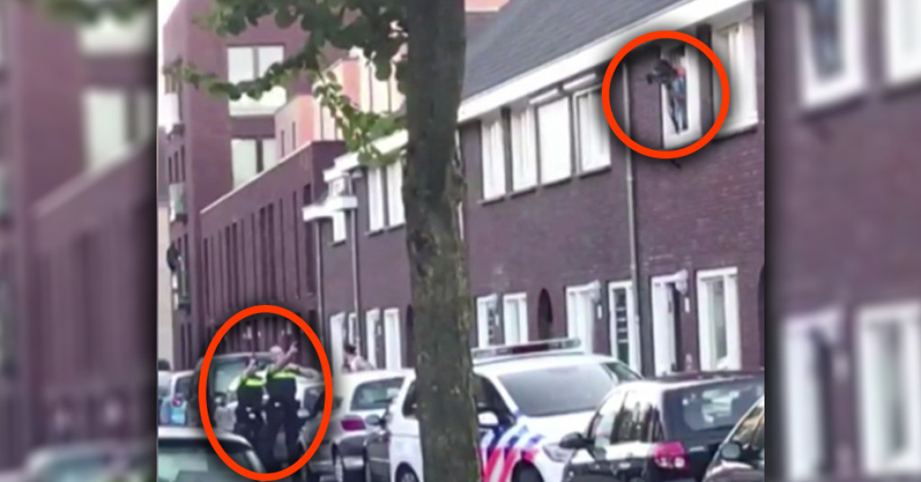 De politie was naar het huis van de man gegaan na een zorgwekkend telefoontje waarin geschreeuw op de achtergrond was te horen. Eenmaal bij het huis hing de man uit zijn raam op de eerste verdieping en richtte de kruisboog op een van de agenten.