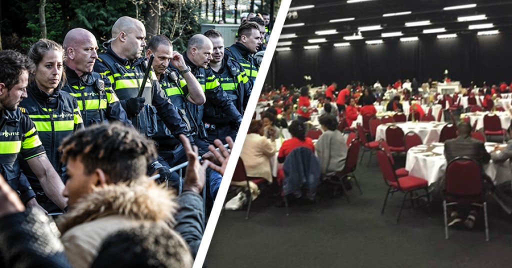 In afwachting van uitspraak rechter verzamelt de ME zich in Veldhoven bij conferentielocatie Eritreeërs pic.twitter.com/eie0i3l86O