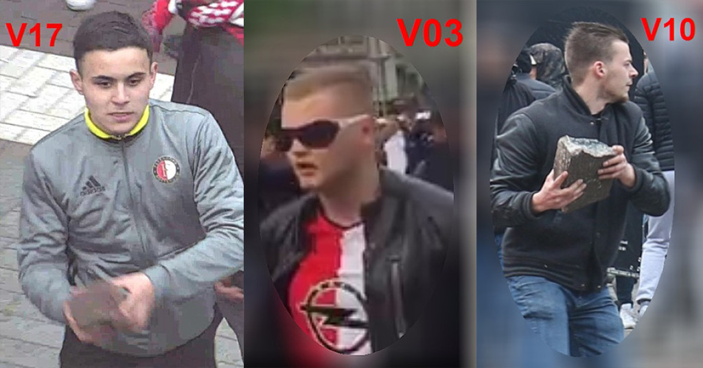De politie heeft foto's gepubliceerd van relschoppers die verdacht worden van openlijke geweldpleging na de voetbalwedstrijd Excelsior - Feyenoord afgelopen zondag.