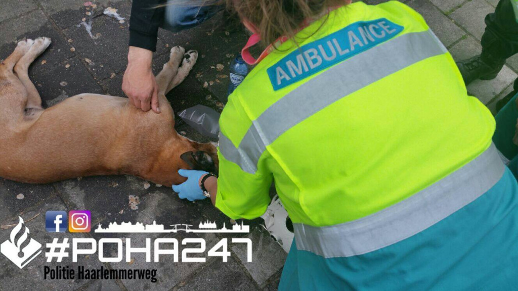 Medewerkers van de ambulance in Amsterdam hebben gisteren eerste hulp verleend aan een hond. De hond had een epileptische aanval.