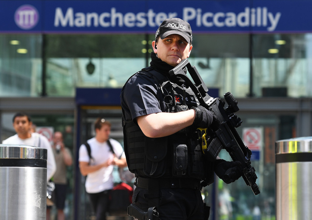 Premier Theresa May heeft naar aanleiding van de aanslag in Manchester het dreigingsniveau opgeschroefd naar het hoogste niveau. Dat betekent dat de vriendelijk Bobby met pet plaatsmaakt voor militaire agenten met machinegeweren.