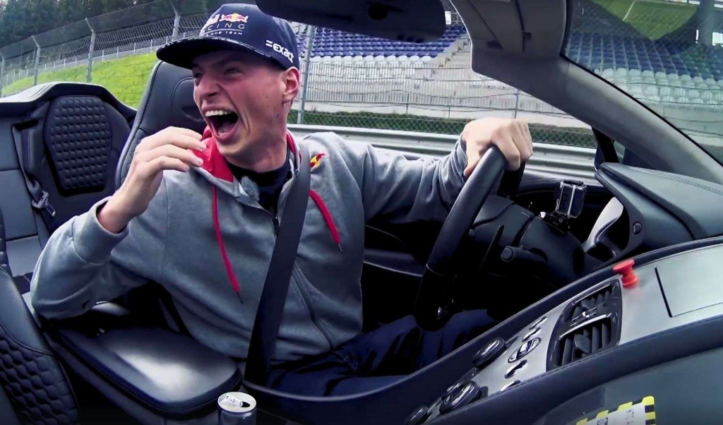 Formule 1-coureur Max Verstappen en zijn teamgenoot Daniel Ricciardo hebben het op een circuit in Oostenrijk tegen elkaar opgenomen tijdens een caravanrace.