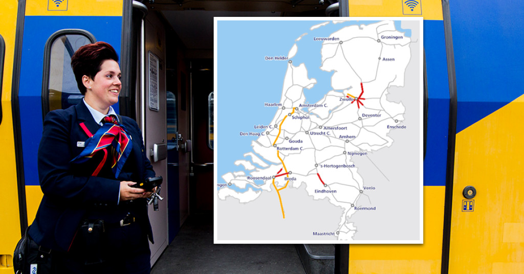 Op de website van de NS is te zien dat er van en naar Zwolle geen enkel treinverkeer mogelijk is. Hetzelfde geldt tussen Breda en Roosendaal en Rotterdam en Roosendaal. Tussen Eindhoven en Den Bosch en Leiden en Den Haag is minder treinverkeer mogelijk.