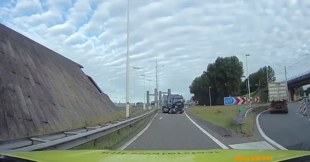 Schrik van je leven: spookrijdende vrachtwagen dendert op bestuurder af