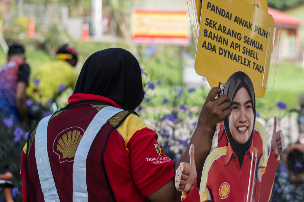 Shell voelt zich genoodzaakt om honderden kartonnen borden van een vrouwelijke pompbediende per direct uit tankstations in Maleisië weg te halen. Er circuleren namelijk foto's op Facebook en andere social media waarop mannen zich niet kunnen inhouden bij de levensgrote afbeelding van de vrouw.