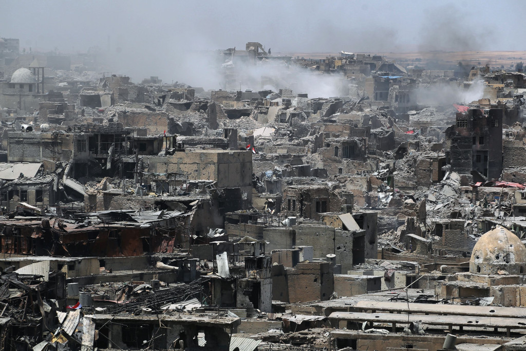 Het is drie jaar geleden dat IS het kalifaat uitriep in Mosul. De afgelopen maanden is er veel gevochten om de stad terug te veroveren. Sinds oktober proberen overheidstroepen, gesteund door Amerikaanse luchtaanvallen, IS uit de stad te verdrijven. De stad ligt dan ook grotendeels in puin.