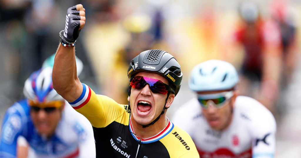 De sprinter van LottoNL-Jumbo won op de Champs-Élysées de massasprint. Vorige week zorgde Bauke Mollema voor de eerste Oranje-zege.