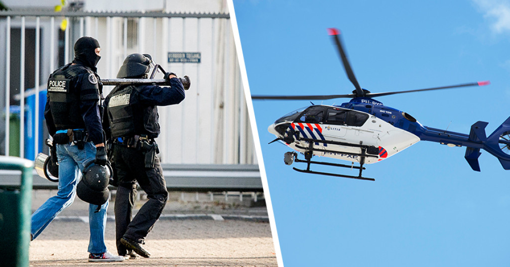Het arrestatieteam is aan het begin van de avond een woning binnengevallen. Een ooggetuige had iemand met een automatisch wapen naar binnen zien gaan.