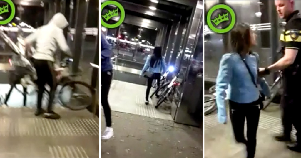 VIDEO: ‘Stoer’ meisje vernielt politiefiets, ziet agent over het hoofd