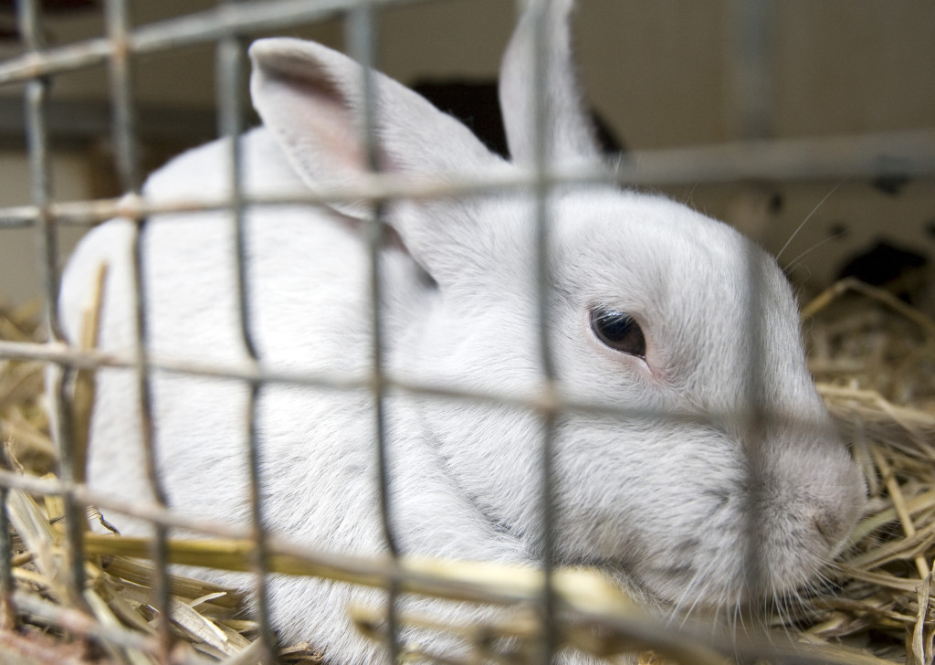 Het is onduidelijk waarom het konijn niet vredig lag te slapen, maar boos door zijn hok stampte.