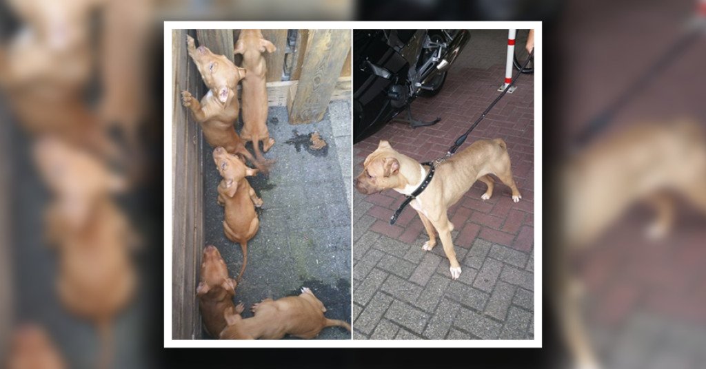 Eén van de twee honden was de moederhond van de vijf puppy’s. Alle honden zijn in beslag genomen en de 20-jarige bewoner, die niet blij was met het in beslag nemen van zijn dieren, is in de boeien geslagen door de politie.