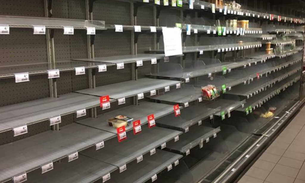 Op de Facebook van de Albert Heijn in Berghem worden excuses gemaakt aan de klant. “Beste klant. Allereerst onze welgemeende excuses voor de huidige situatie in onze winkel. Wij als personeel van Albert Heijn Berghem kunnen niets meer doen dan hopen op uw begrip.” Op de foto is te zien dat de schappen inmiddels bijna helemaal leeg zijn.