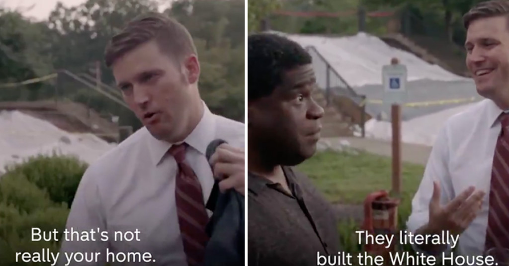 Spencer houdt er extreme denkbeelden op na en zegt onder meer dat Groot-Brittannië niet "het échte thuis is" van de in Engeland geboren Younge, die een donkere huidskleur heeft. Als Younge vervolgens stelt dat zwarte Amerikanen letterlijk het Witte Huis hebben gebouwd, zegt Spencer dat dat alleen zo is "omdat wij hen zeiden dat te doen".