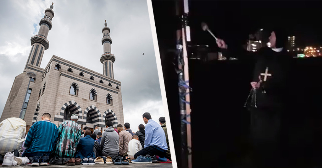 VIDEO: Pegida besmeurt bouwplaats moskee met varkensbloed