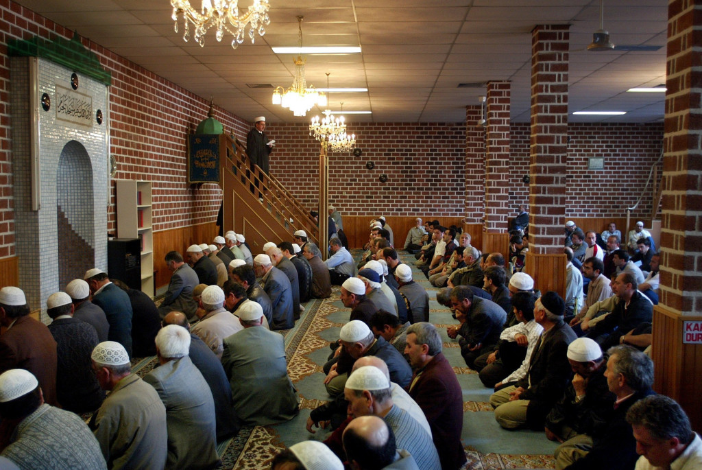 Man met mes springt via dakkoepel moskee in