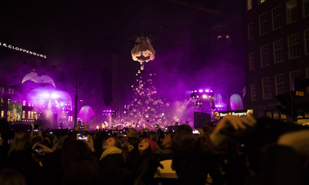 Dat gebeurde tijdens het jaarlijkse lichtjesfeest Turn on the Lights, dat wordt georganiseerd door De Bijenkorf. Voor een volle Dam werden na een grote show 300.000 lichtjes ontstoken.