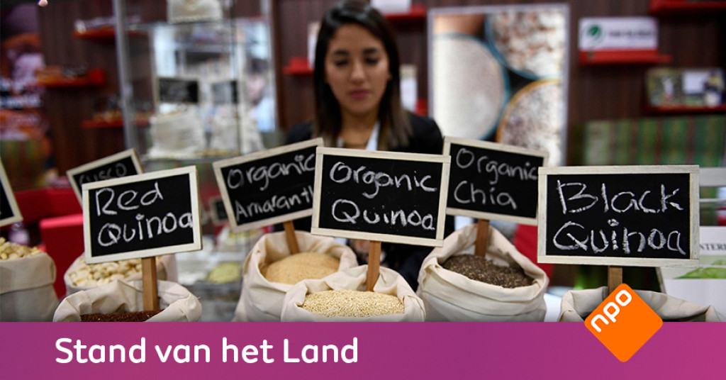 De meeste quinoa die naar Nederland wordt gehaald komt uit Peru met 4,1 miljoen kilogram. Ook buurlanden Bolivia (0,9 miljoen kilogram) en Chili (0,4 miljoen kilo) exporteren naar Nederland. Het restant komt uit Europa, al is dat ook hoofdzakelijk doorvoer van quinoa dat elders is verbouwd.