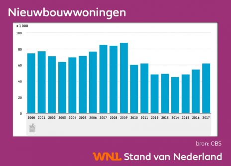In 2017 zijn in Nederland ruim 62.000 nieuwbouwwoningen opgeleverd. Dat is het hoogste aantal sinds 2009.