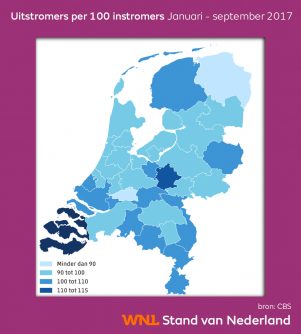 In de arbeidsregio Zeeland is de bijstandsuitstroom relatief het grootst. Per 117 uitstromend waren er 100 instromend.