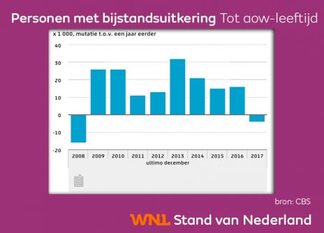Het aantal 27- tot 45-jarigen met bijstand is in 2017 met ruim 8.000 afgenomen. Het aantal bijstandsgerechtigde jongeren tot 27 jaar is gelijk gebleven.