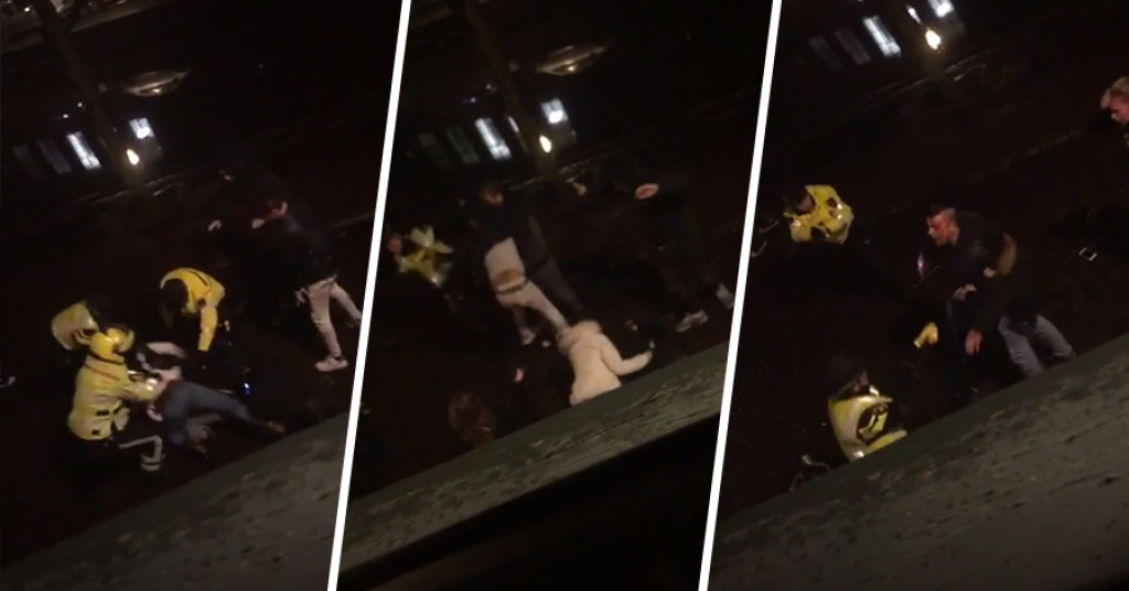 De situatie ontstond zaterdagochtend rond 03.00 uur toen een van de vrouwen van het clubje uit Bunschoten-Spakenburg werd aangesproken omdat ze een winkelruit zou hebben vernield. De anderen bemoeiden zich daarna met het gesprek en de 21-jarige man begon op de agente in te slaan en haar te wurgen.