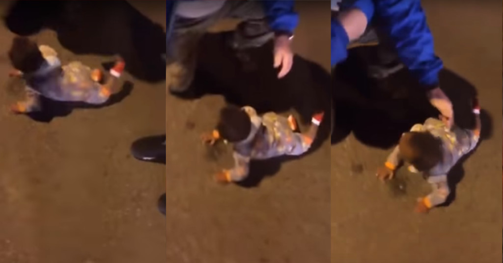 In de video is te zien hoe voorbijgangers met stomheid geslagen zijn als ze het kindje op straat treffen. Tegen het einde van de video is te horen hoe de moeder van het kind komt aangerend. "Dat is mijn kind! Mijn kind!"