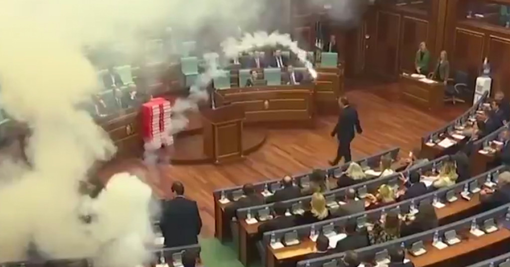 MORE: Tear gas attack inside the Kosovar Parliament by opposition MPs. #Kosovopic.twitter.com/Xwa8Ot5Mih
