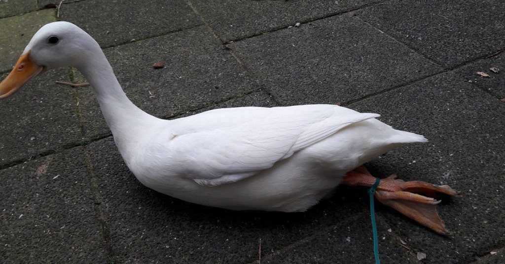 Een witte eend is het slachtoffer geworden van een burenruzie in de Hoeksche Waard. Een van de buren bond het beest vast met een tiewrap, om wraak te nemen.
