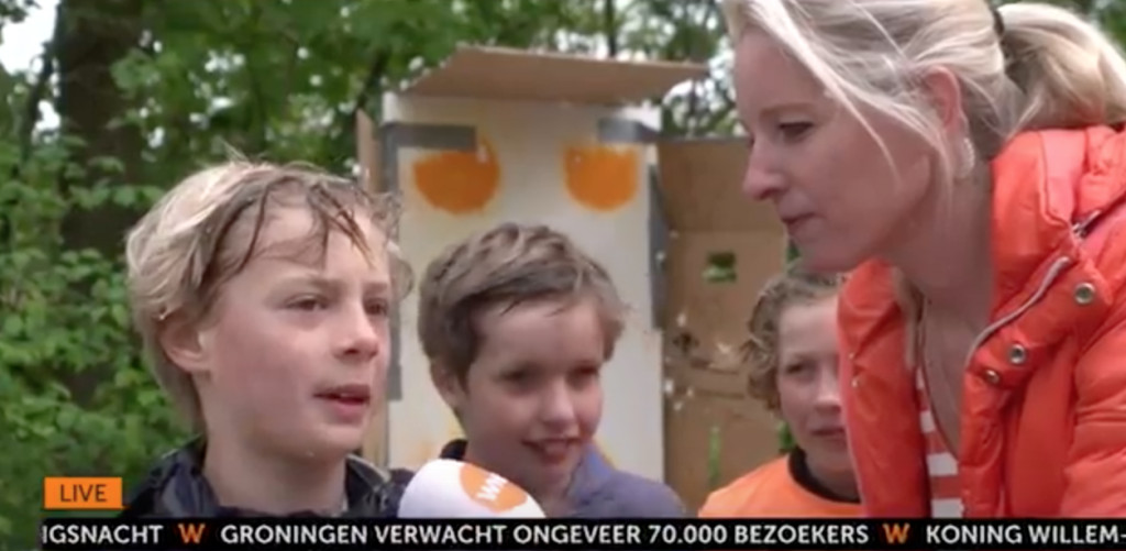 Het is Koningsdag en daarom was verslaggeefster Linda Geerdink al vroeg op pad op de vrijmarkt in Amsterdam. Op de Kindervrijmarkt toonde ze zich sportief door zich door kinderen te laten bekogelen met eiren. "Jullie kunnen toch wel mikken, jongens?"