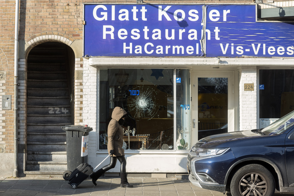 LEES OOK: Man met Palestijnse vlag slaat ramen in van Israëlisch restaurant in Amsterdam