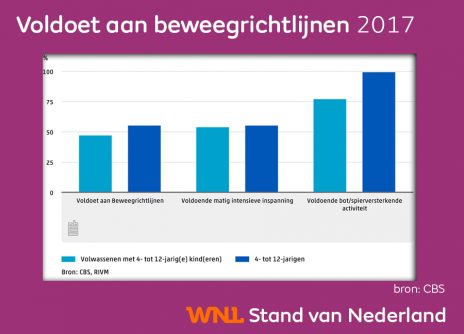 Ruim de helft van de Nederlandse kinderen tussen 4 en 12 jaar bewoog in 2017 voldoende.