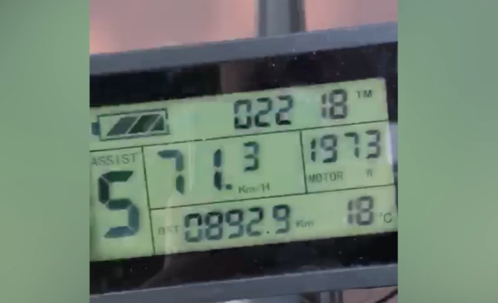De baas van de fietsenmaker sprong op de fiets om het setje te testen na installatie. De beelden zijn geschoten op de Westvlietweg in Leidschendam. Als de bestuurder even aanzet zit hij binnen de kortste keren op een snelheid van boven de 70 kilometer per uur. "Er zijn geen gevaarlijke situaties ontstaan, omdat het fietspad grotendeels leeg was."