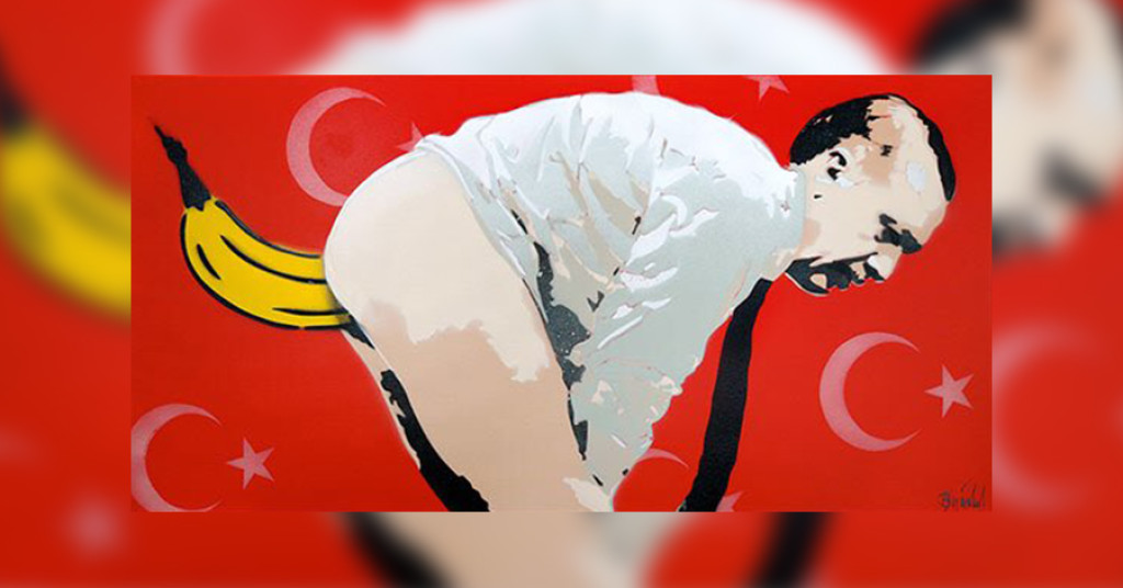 Het schilderij met daarop de Turkse president Erdogan met een banaan tussen zijn billen heeft opnieuw gezorgd voor ophef. Het museum waar het kunstwerk momenteel hangt wordt beveiligd na meerdere bedreigingen. Dat meldt deRheinische Post.