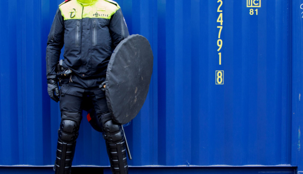 Er wordt met stoelen gegooid en mensen rennen in het rond. De politie is met een helikopter op zoek naar betrokkenen.