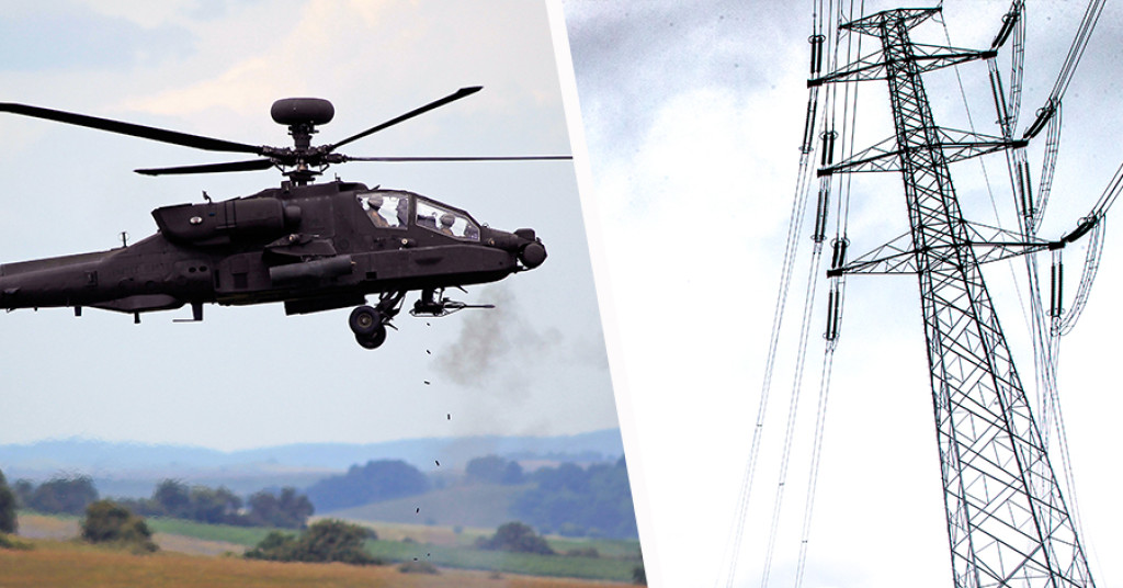 Tijdens een oefening van de luchtmacht vloog vorig jaar de Apache-helikopter van de Koninklijke Landmacht tegen een bliksemdraad van een hoogspanningsmast. Gelijk daarna is de helikopter geland. Er zijn bij het ongeluk geen gewonden gevallen.