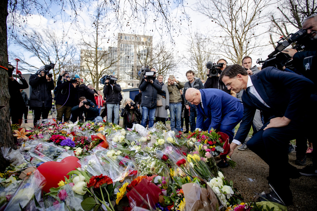 Premier Mark Rutte heeft dinsdagmiddag namens het kabinet bloemen gelegd op het 24 Oktoberplein in Utrecht als blijk van medeleven met de slachtoffers van de schietpartij. Dat meldt persbureau ANP. Hij werd daarbij vergezeld door minister van Justitie en Veiligheid Ferd Grapperhaus.
