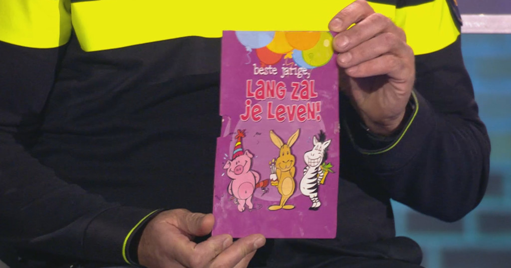 O. stuurde onder meer een op het oog vrolijke verjaardagskaart naar de Jumbo aan de Veemarkt in Zwolle. Wie de kaart openmaakt hoort het liedje 'Dans je de hele nacht met mij'.