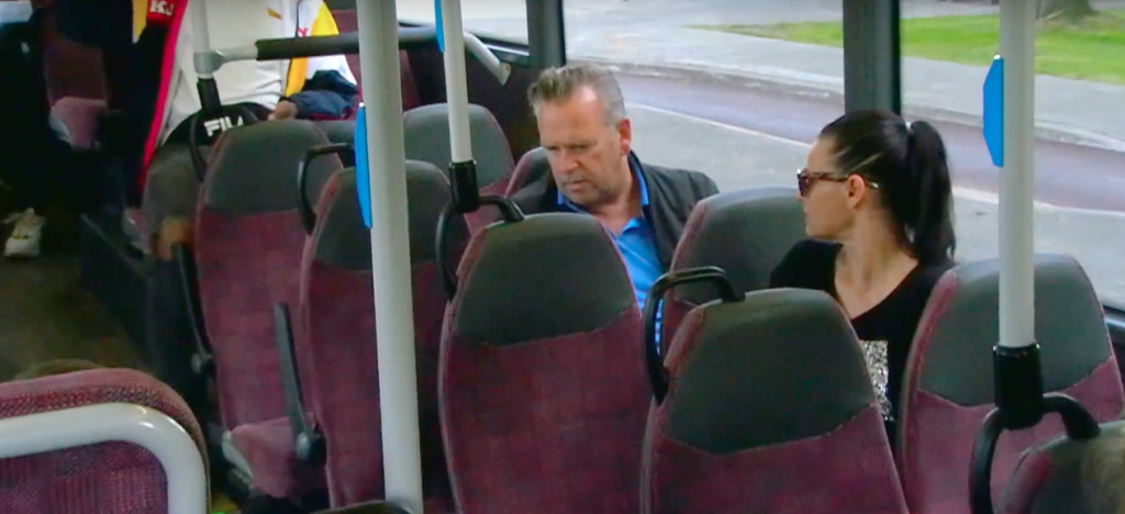 De man begint direct met klagen tegen de buschauffeur, omdat de bus een paar minuten te laat bij de halte is verschenen. Als hij vervolgens zijn tas niet van de gehandicapte plek wil verwijderen, waar de buschauffeur een man in een rolstoel wil positioneren, is de maat voor een medereiziger vol.