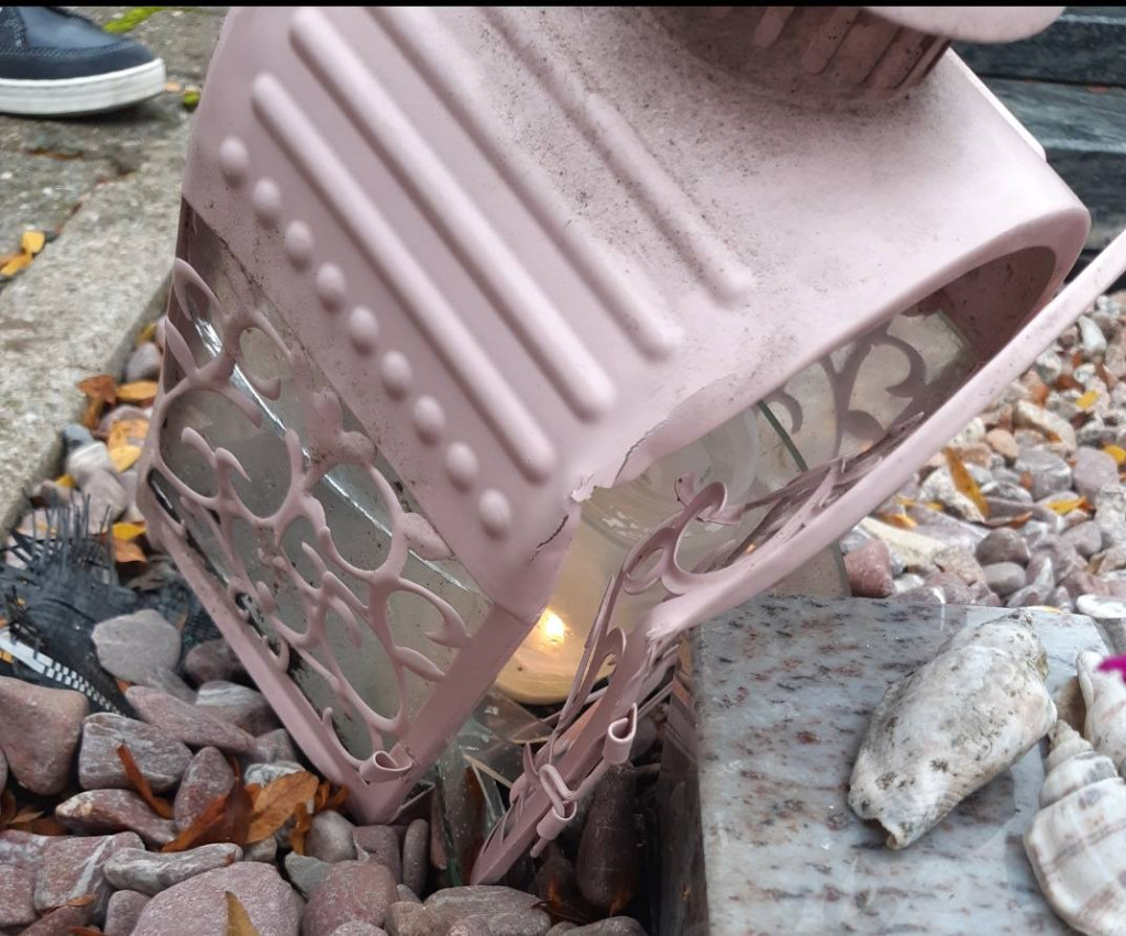 Toen de nabestaanden van het kindje afgelopen dinsdag bij het graf kwamen, zagen zij dat er twee knuffels weg waren. De dag erna zagen ze dat een roze lantaarn moedwillig was vernield.