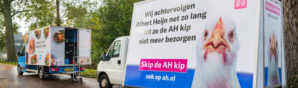 Wakker Dier is van plan om de komende tijd met een eigen wagen met daarop een billboard achter de bezorgbusjes van AH aan gaan rijden. De tekst die daarop staat is 'Wij achtervolgen Albert Heijn net zo lang, tot ze de AH kip niet meer bezorgen'.