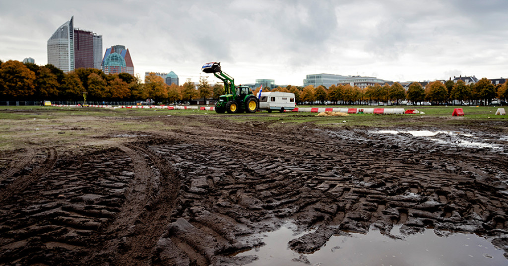 De eerste bouwmachines zijn vanavond al bij het Malieveld in Den Haag gearriveerd, zo laat Sjoerd Vogelzang van actiegroep Grond in Verzet weten. Morgen zullen duizenden actievoerders uit de bouwsector zich bij hen voegen tijdens het grote bouwersprotest.