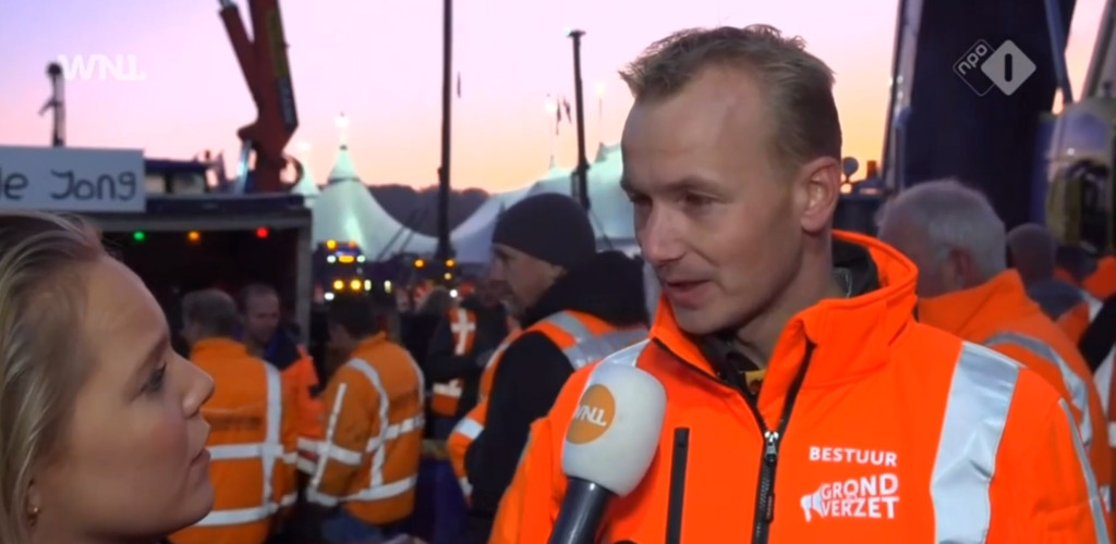 Het Malieveld in Den Haag staat al bijna vol met bouwmateriaal en demonstranten. Veel demonstranten zijn nog onderweg naar Den Haag, wat verkeersopstoppingen op snelwegen richting het westen veroorzaakt. "Vrachtauto's, torenkranen, telekranen, betonauto's, alles wat met de bouw te maken heeft staat hier", zegt Klaas Kooier van Grond in Verzet in Goedemorgen Nederland.