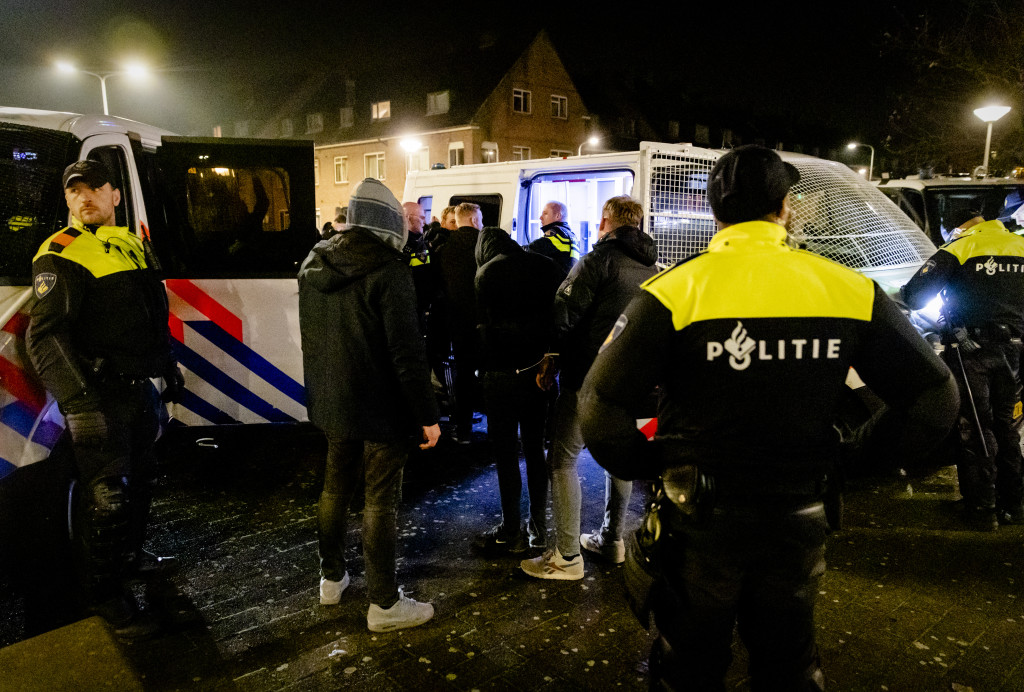 Later op de avond moest de politie uitrukken na meldingen van vernielingen en brandstichting in de Haagse wijk Laakkwartier. Twee auto’s gingen hier in vlammen op en er werd zwaar vuurwerk afgestoken.