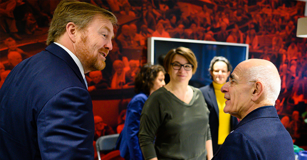 Koning Willem-Alexander en directeur Jurre Bosman en bestuursvoorzitter Shula Rijxman.