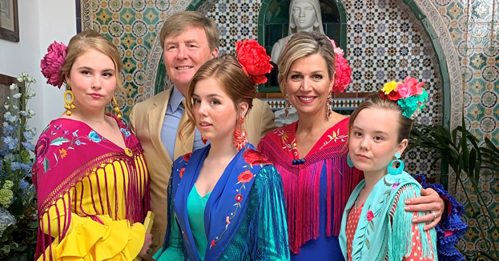 Op de foto zijn de drie prinsessen te zien in traditionele flamencojurken. Deze klederdracht is geheel volgens plaatselijke traditie.